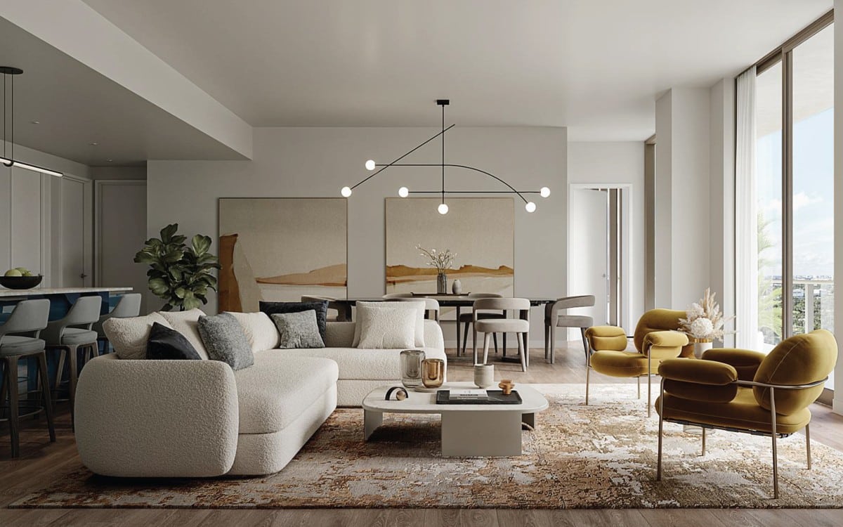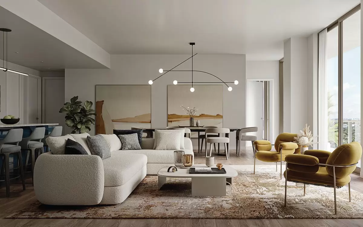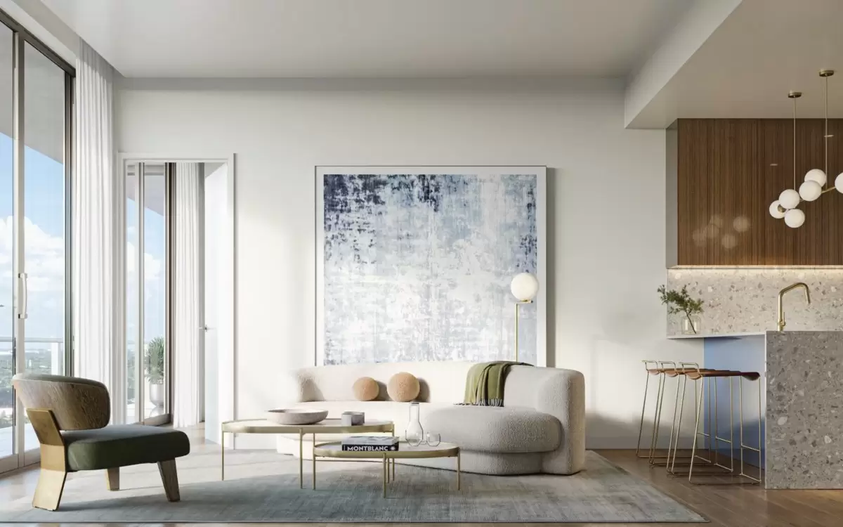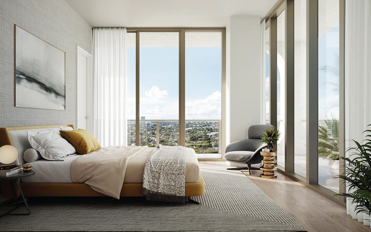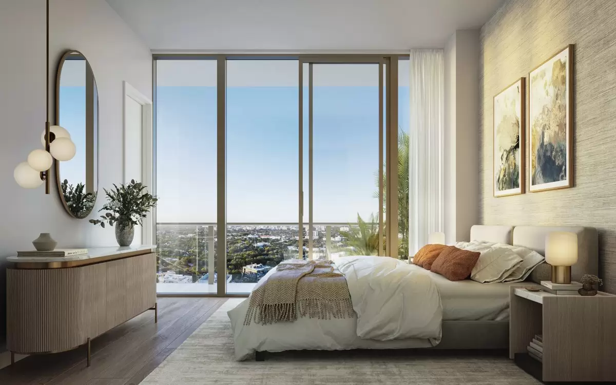 Los interiores espaciosos y llenos de luz con techos altos de 10 pies combinan un estilo moderno con un estilo europeo atemporal. Los detalles de diseño magistralmente elaborados incluyen cocinas personalizadas con gabinetes italianos y encimeras de terrazo y cuarzo. La mayoría de las residencias cuentan con terrazas privadas ideales para desayunar al aire libre. Las ventanas del piso al techo muestran una variedad de vistas panorámicas de Coconut Grove, la bahía y el brillante horizonte del centro de Miami.